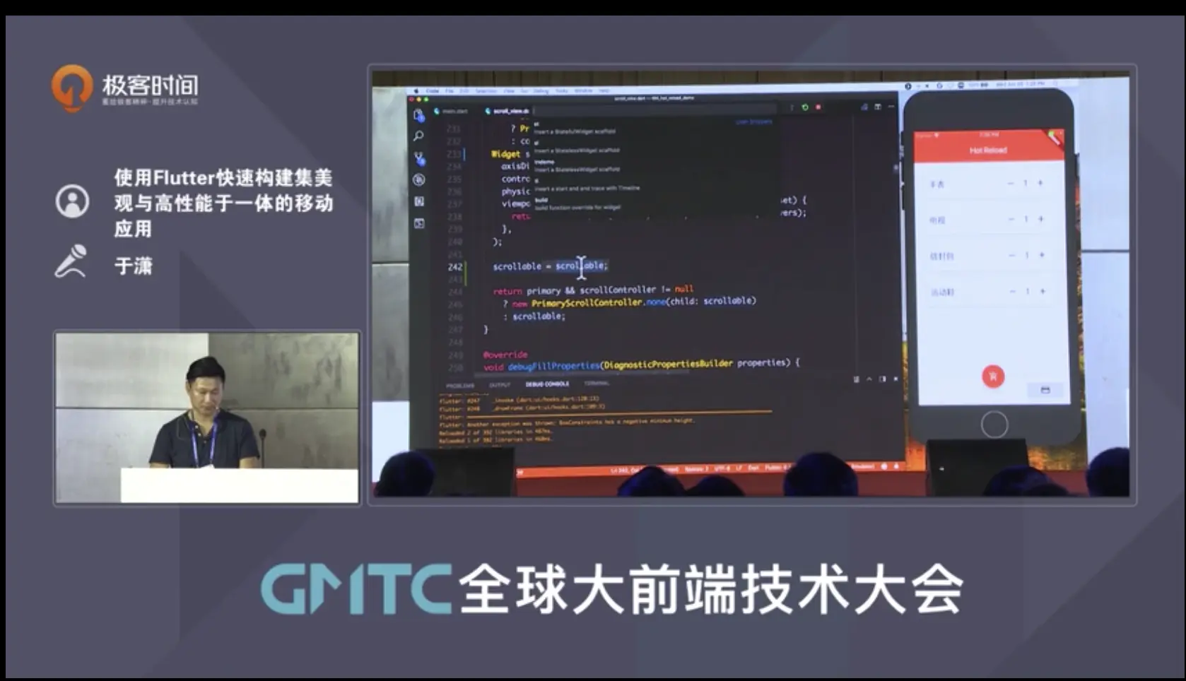 第二, Google 工程师 Xiao Yu 在 6 月成功举办的 2018 全球大前端技术大会(GMTC)中进行的关于Flutter的 演讲视频中使用的编辑器也是VS Code