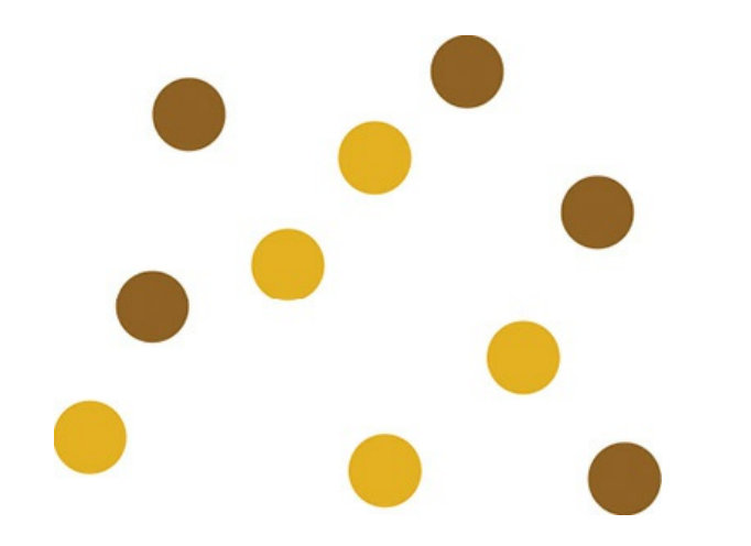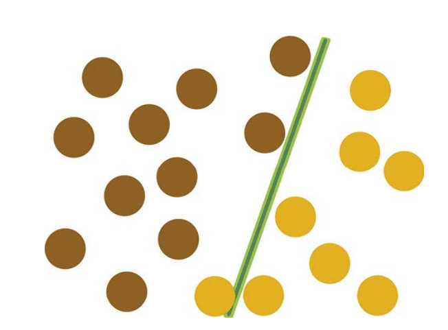 传说魔鬼和天使玩了一个游戏,魔鬼在桌上放了两种颜色的球。魔鬼让天使用一根木棍将它们分开。这对天使来说,似乎太容易了。天使不假思索地一摆,便完成了任务。魔鬼又加入了更多的球。随着球的增多,似乎有的球不能再被原来的木棍正确分开,如下图所示。