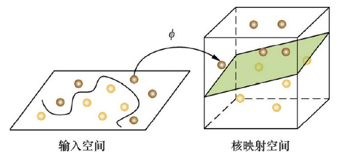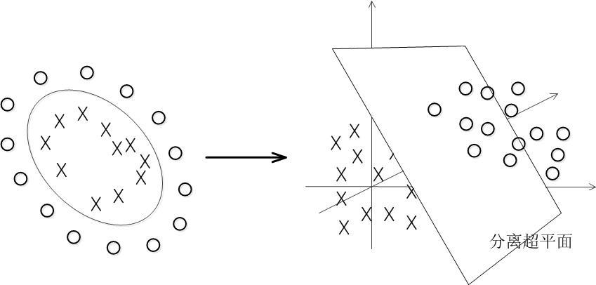 - 实际中,我们会经常遇到线性不可分的样例,此时,我们的常用做法是把样例特征映射到高维空间中去(映射到高维空间后,相关特征便被分开了,也就达到了分类的目的);