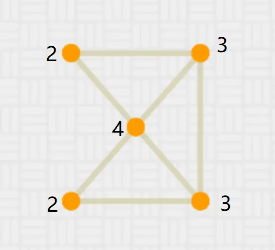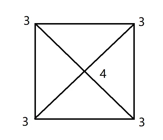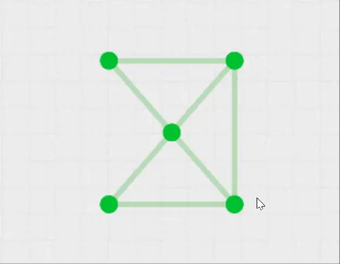或者在上图中再添加一笔后,奇顶点个数也为 0 了。可以试试也能一笔画出来的。此时可以边数较多的点画起,最后还是这个点结束。(其实任意一点都可以)
