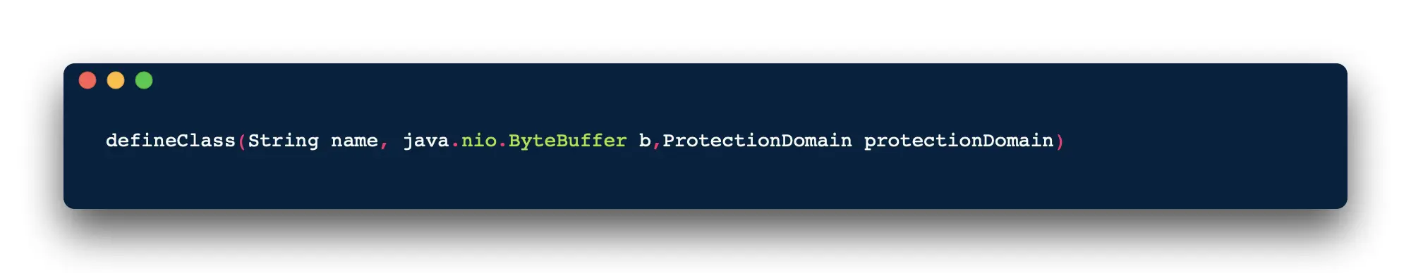 指定保护域(protectionDomain),把ByteBuffer的内容转换成 Java 类,这个方法被声明为final的
