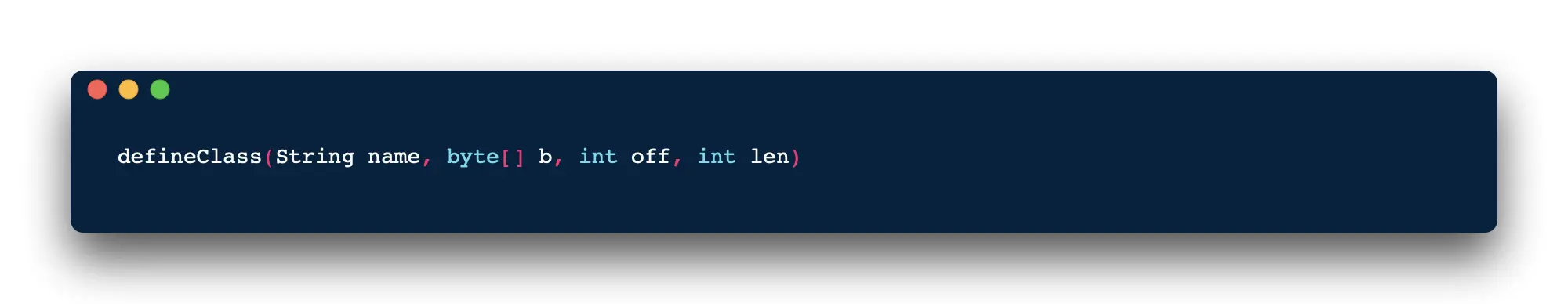 把字节数组 b中的内容转换成 Java 类,其开始偏移为off,这个方法被声明为final的