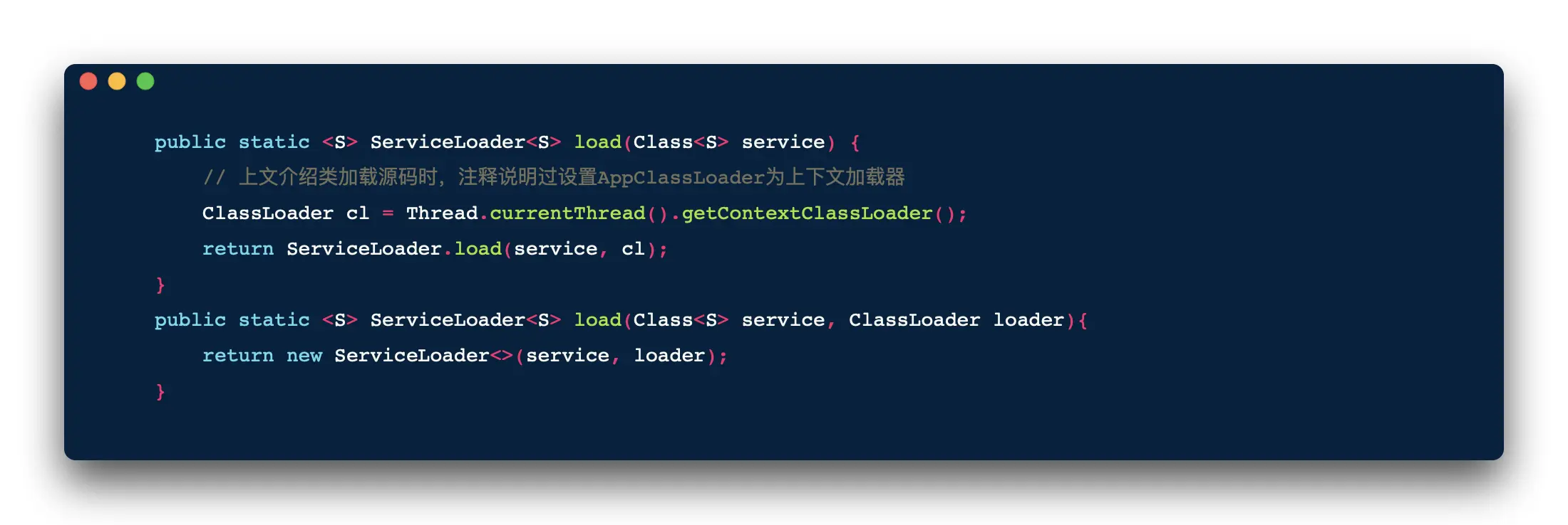 文章前半段提到线程上下文类加载器可以通过 Thread.setContextClassLoaser() 方法设置,如果不特殊设置会从父类继承,一般默认使用的是应用程序类加载器