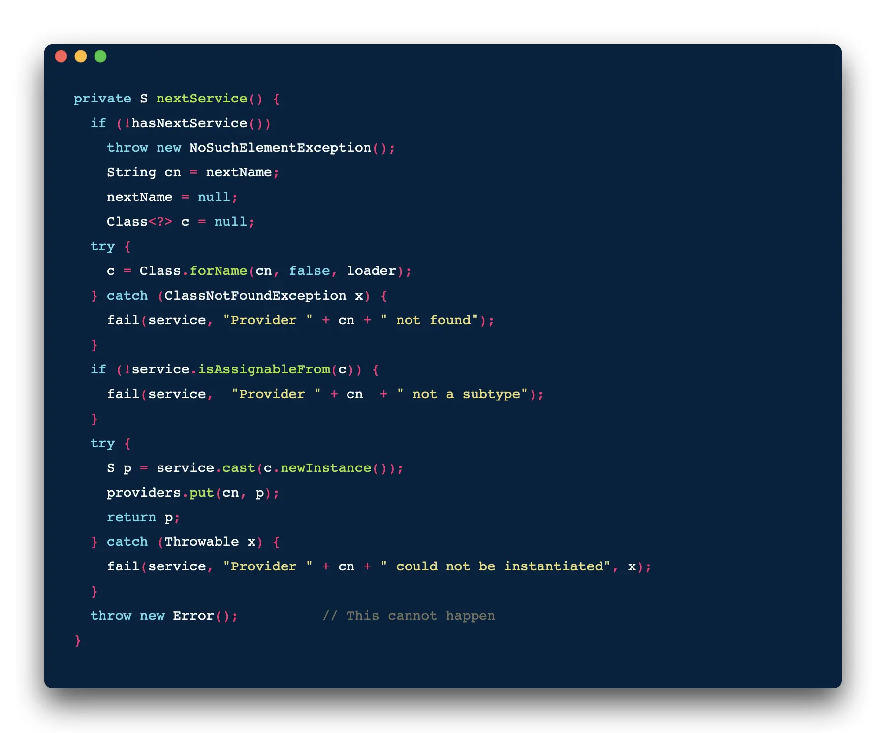 继续向下看构造函数实例化 ServiceLoader 做了哪些事情: