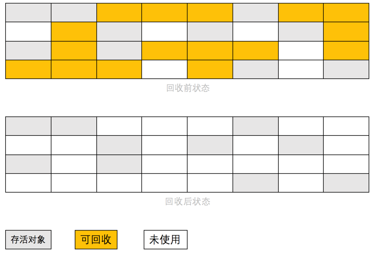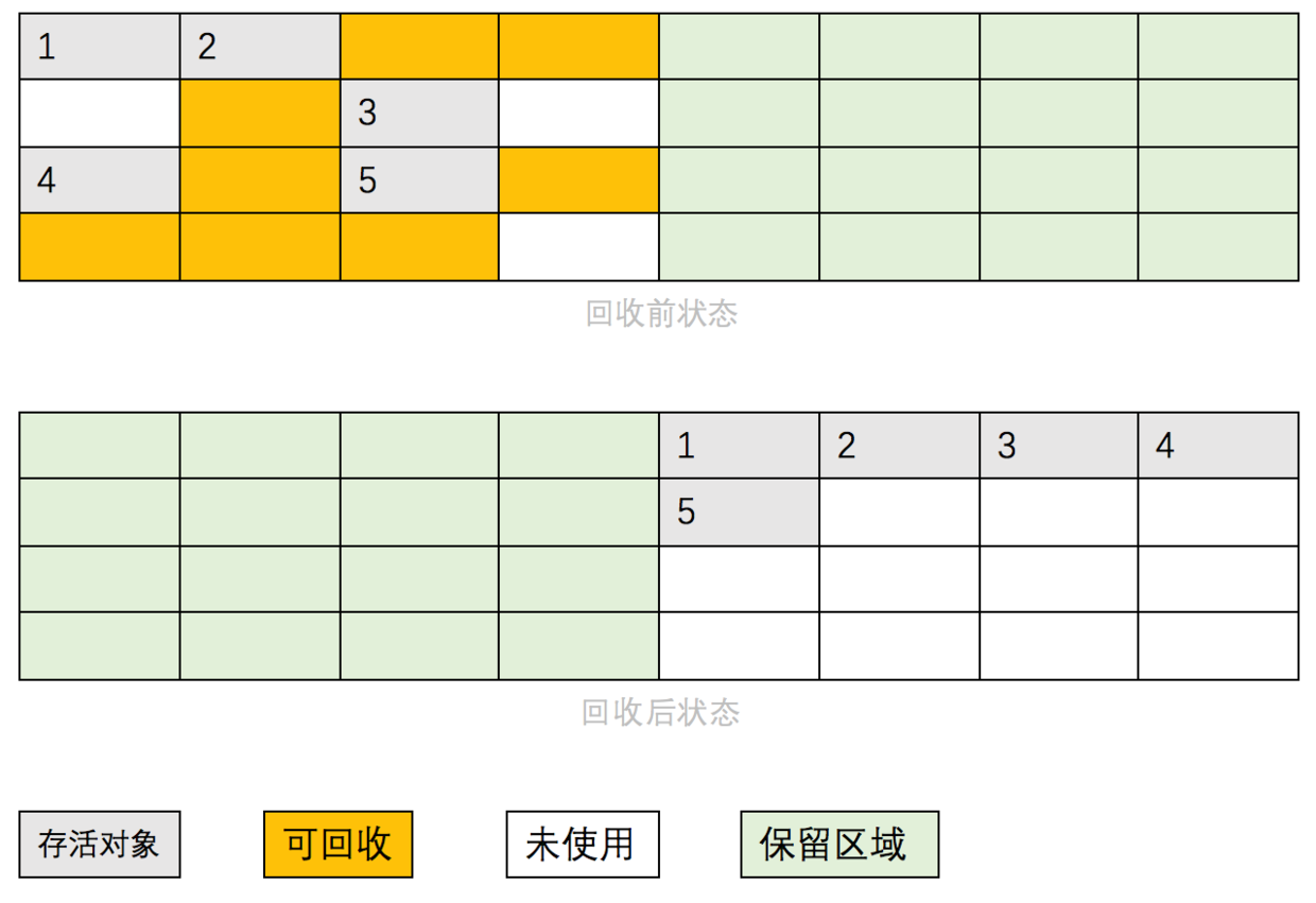第二阶段:存活对象往一端移动,清理边界外内存