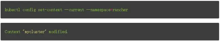这将改变当前上下文,以自动将未来的操作应用于rancher命名空间。