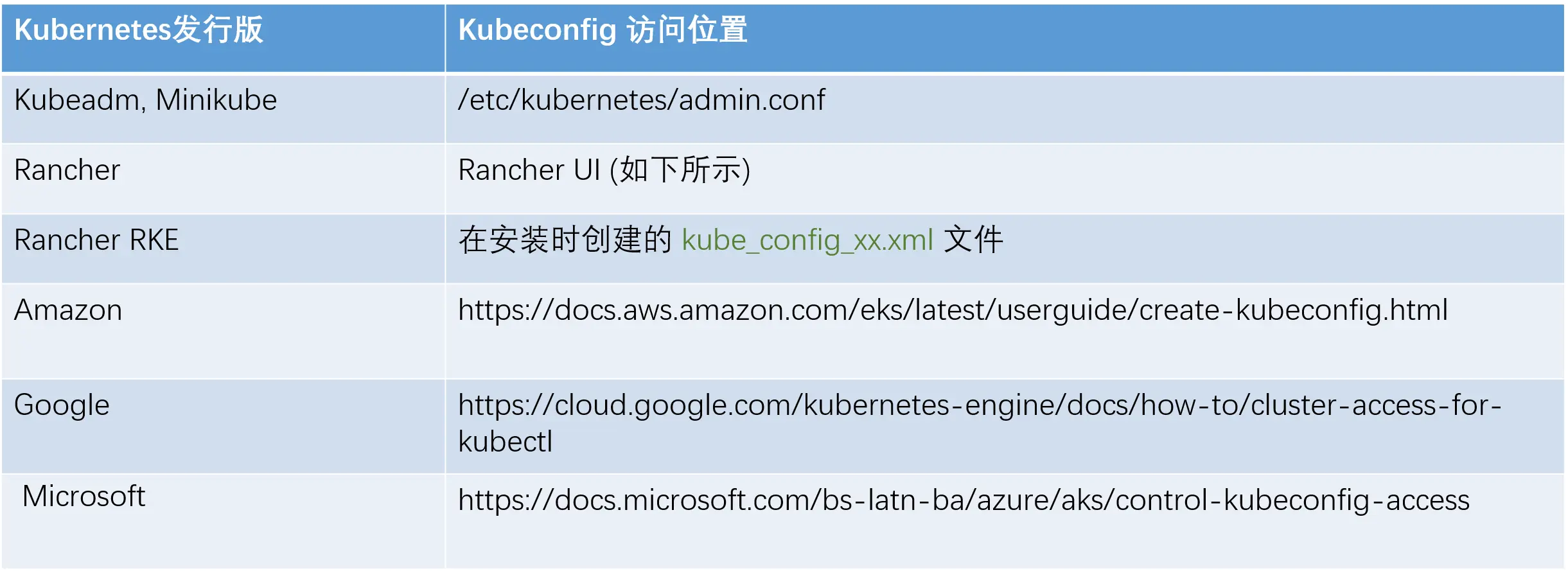 kubeconfig文件组织有关集群、用户、命名空间和身份验证机制的信息。kubectl命令使用这些文件来查找它在选择集群并与之通信时所需要的信息。