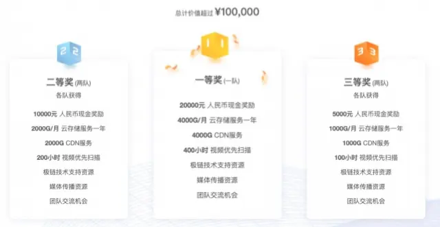 1、参赛选手的小程序,经过评审上线后,小程序Owner及其团队可享受该小程序后续营收分成 2、广告业开发团队可获得广告投放礼包 3、媒体业开发团队可加入V+生态,接入VideoOS广告生态 4、Video++为企业客户提供免费的生态产品、技术支持