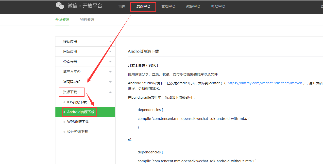微信开发平台去注册账号并且创建一个移动应用。(地址:open.weixin.qq.com),