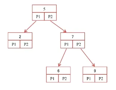 非叶子节点的子树指针P[i],指向关键字值(k[i],k[i+1])的子树