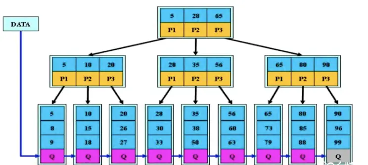 所有叶子节点均有一个链指针指向下一个叶子节点 (方便做范围统计)