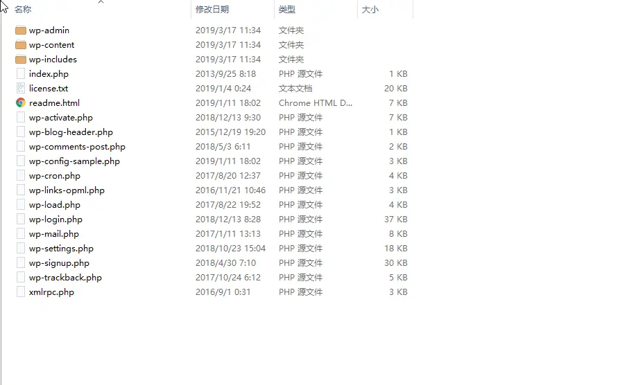 下载下来之后得到WP源文件,如下图: