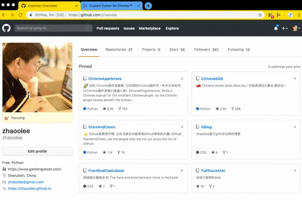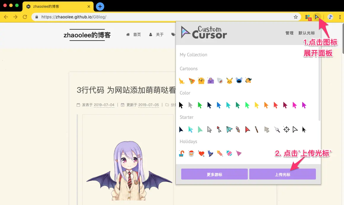 浏览器的鼠标光标样式, 可以通过css中的cursor属性进行定义, 也可以通过Chrome扩展程序《Custom Cursor for Chrome™》进行更换