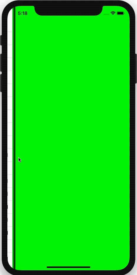 绿色部分为放置flutter的控制器(ContentViewController),当在屏幕左侧滑动的时候,会划出iOS的抽屉控制器(LeftTableViewController),并且此抽屉手势也是iOS控制。