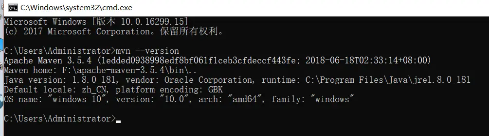 接下来打开命令行操作窗口,来测试Maven是否安装成功。(window下搜索cmd) 测试是否安装命令 mvn --version