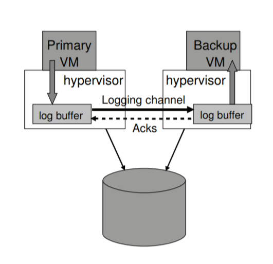 日志信道可以通过一个大的缓冲来实现,必要的时间可以控制主虚拟机的运行速度来保证备份虚拟机能够赶上。
