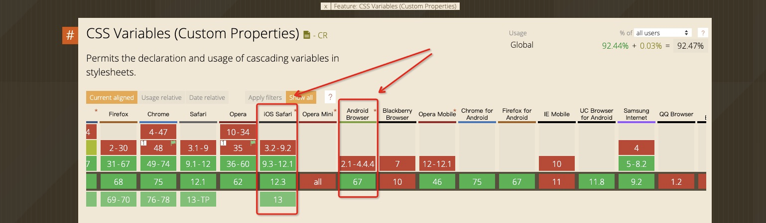 css3变量-主题是一种十分友好的主题适配方式,但也有一个缺点,那就是兼容性,ios9.3+ 、 **android6+**才支持。曾经因为这个不兼容的问题半夜起来临时修复。。。~ ~。修复方案就是采用 less变量-主题。