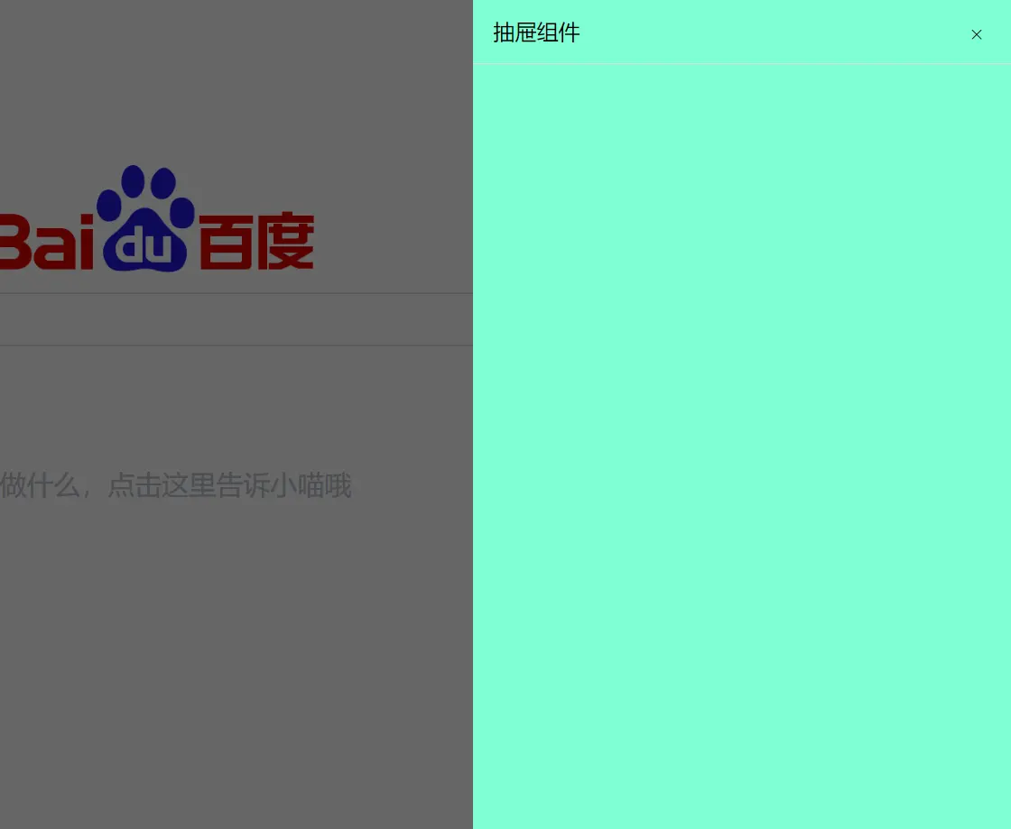 一个抽屉组件的z-index必定是在当前页面之上的,在抽屉主体之外的区域还会有一层半透明的遮罩层,知道这些就很容易了