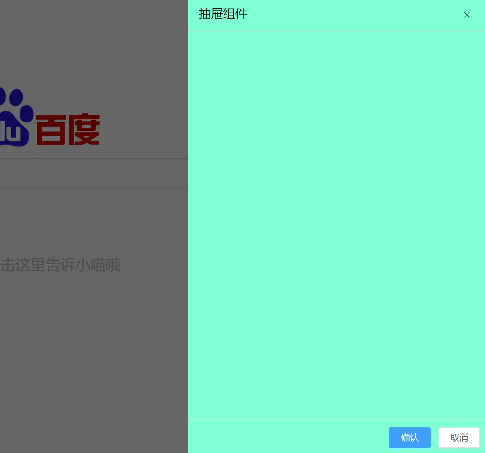 你可以选择是否添加标题,是否添加关闭按钮,值的注意的是如果添加了关闭按钮,点击遮罩层就不会自动关闭抽屉组件了