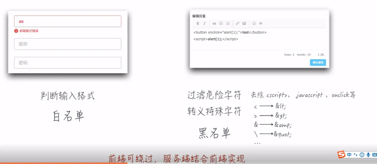 过滤危险字符 去除<script>,<javascript,onclick>等 - 黑名单 filter()