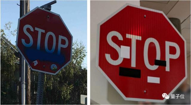 如果把对抗攻击用在自动驾驶汽车上,稍微修改一下路边的交通标志,它就会犯错。