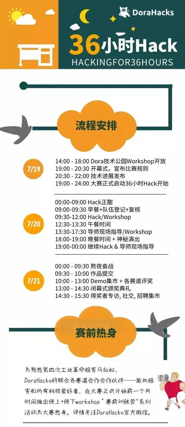 关于主办方:DoraHacks是中国社区覆盖范围最广,全球最活跃的极客组织之一,成立5年来,DoraHacks联合600多家合作伙伴在8个国家15个城市燃起科技团战烽火,积累了3000余项目,辐射30万名开发者,并将于今年7月发起“第四次工业革命”千人黑客马拉松。