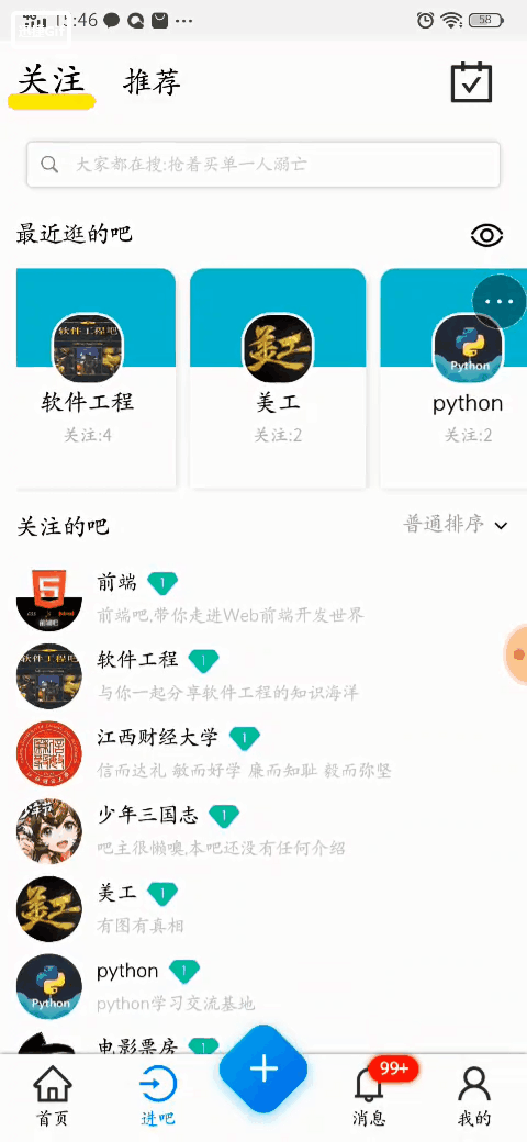 - 最近看过的帖子和最近访问的吧, 这两个模块的数据是采用localStorage存数据,其它的数据均来自后端
