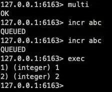 这个队列里面的命令不会被马上执行,直到 exec 命令提交事务,所有队列里面的命令会被一次性,并且排他的进行执行。