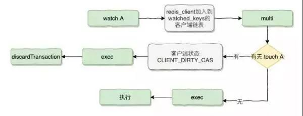 每一次 Watch,Multi,Exec 时都会去查询这个 watched_keys 结构进行判断,每次 Touch 到被 Watch 的 Key 时都会标志为 CLIENT_DIRTY_CAS。