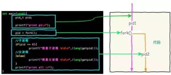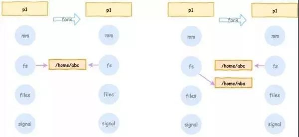 当父进程 Fork 出来一个子进程,子进程和父进程拥有共同的内存数据结构,子进程刚刚产生时,它和父进程共享内存里面的代码段和数据段。