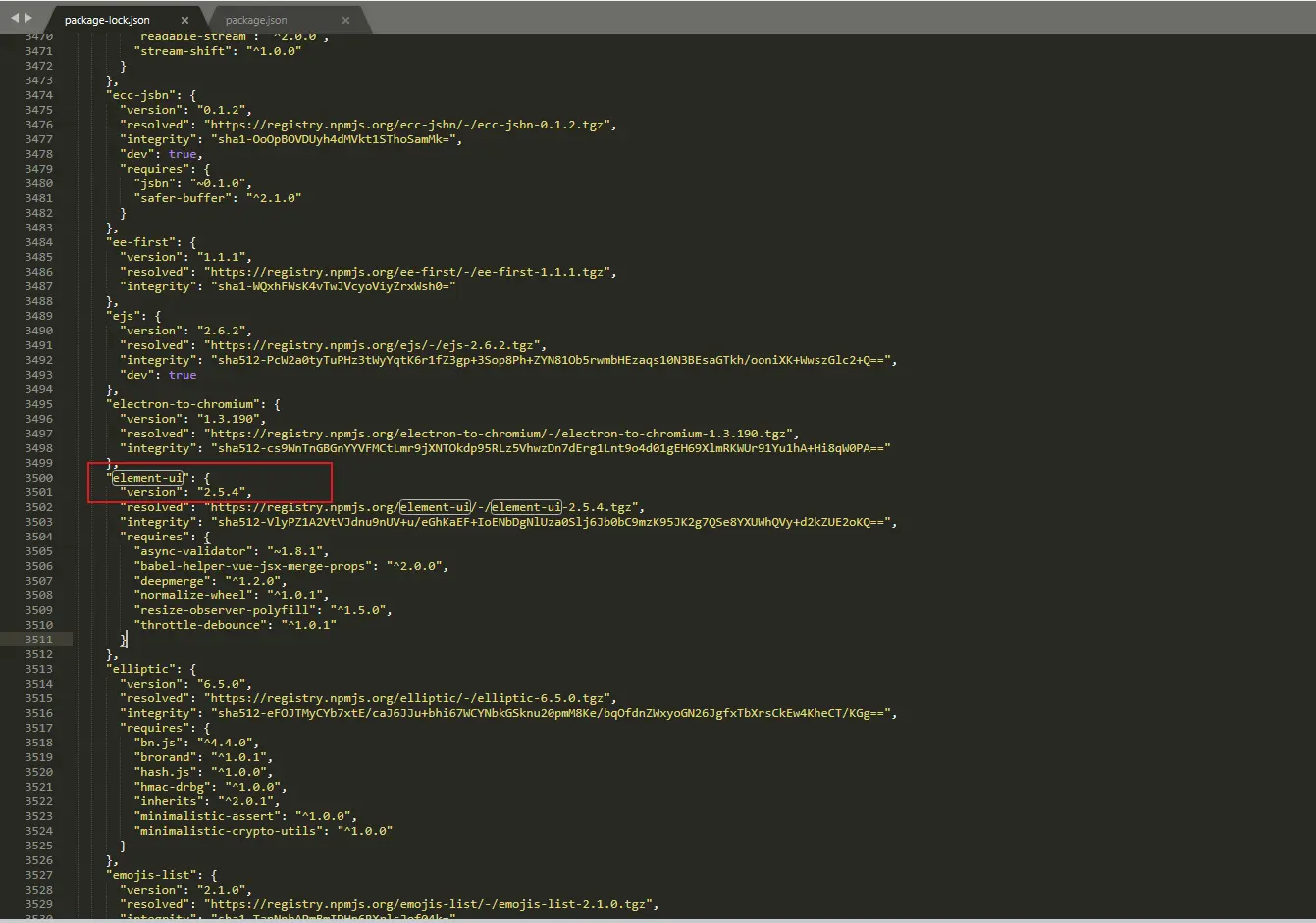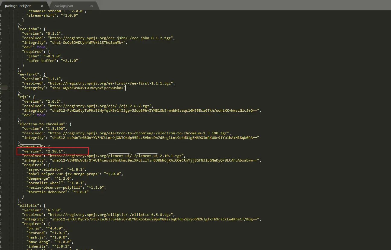 分享我前段时间遇到的一个小问题,首先上几张图,我在开发使用element-ui时,对我的element-ui版本进行升级,使用淘宝镜像,cnpm install element-ui@2.5.4进行版本升级,发现然并卵,package.json和package-lock.jsn,版本都没有变,