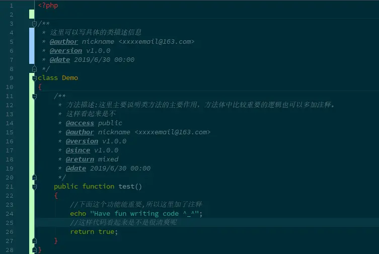 自己开发使用的是PhpStorm ,注释主要是基于PhpStorm的Live Templates模板快速生成的(模板变量速查表地址)