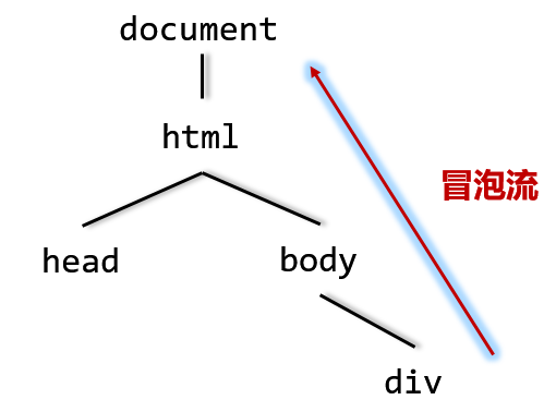 DOM树结构和冒泡事件流方向是下面这样的: