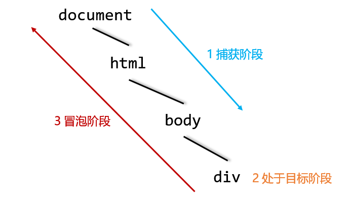即如果在div元素上触发了事件,则受到事件通知的元素的顺序是: