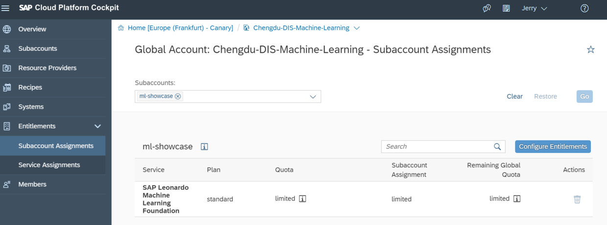 进入global Account->Entitlements->Subaccount Assignments, 点击Configure Entitlements: