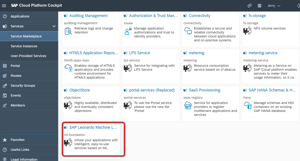 现在,该account的Service Marketplace里终于能看见SAP Leonardo Machine Learning服务了。
