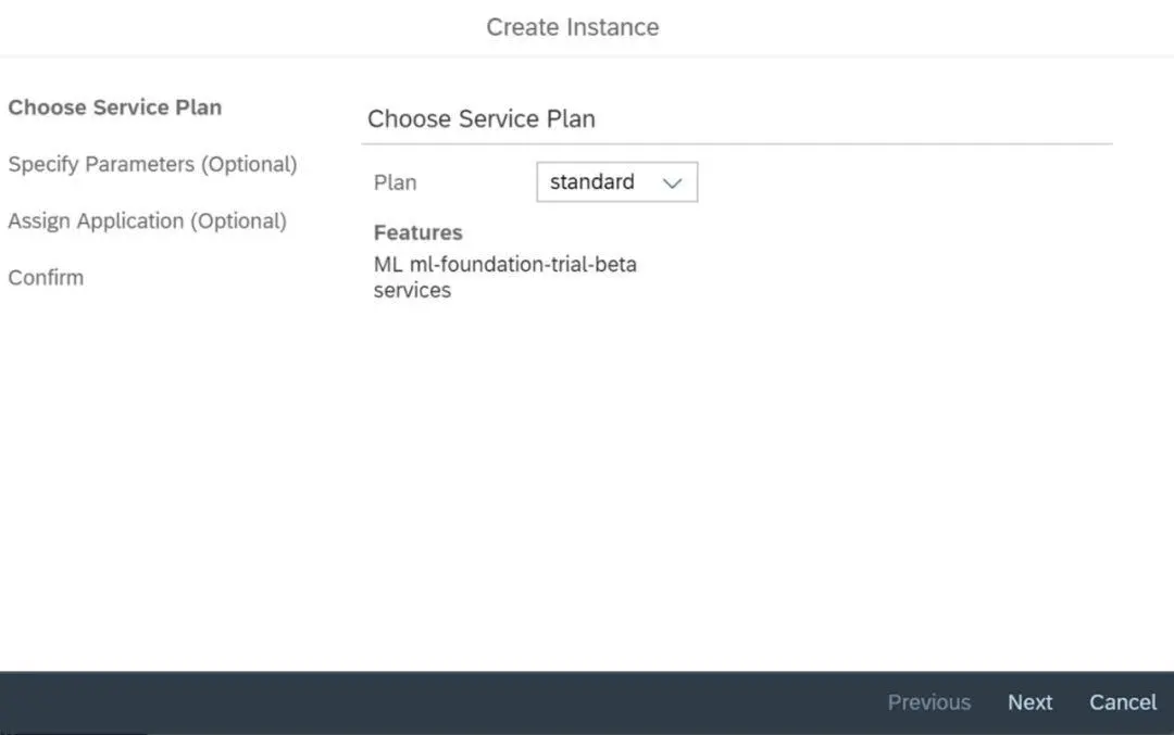 登录SAP Cloud Platform Cockpit,进入CloudFoundry环境的Service Marketplace,找到SAP Leonardo机器学习的服务,单击该服务的超链接进入明细页面: