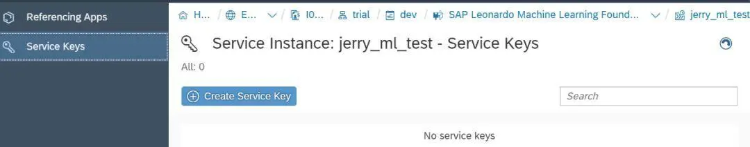 单击这个创建好的服务实例,然后创建一个新的Service Key: