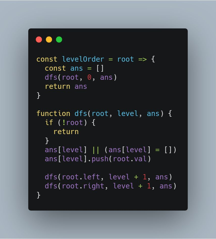 采用 DFS 搜索思想,需要注意在递归的过程中记录当前节点的层次信息:
