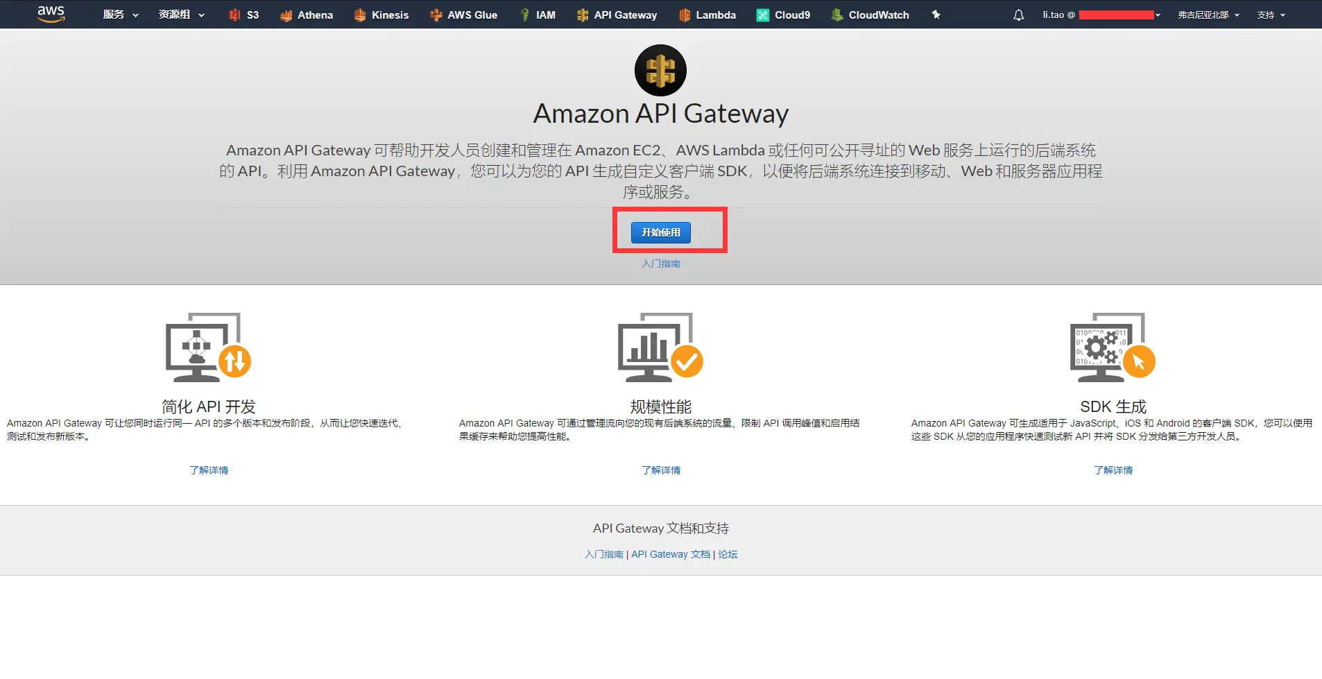 - 打开 AWS API Gateway 控制台。