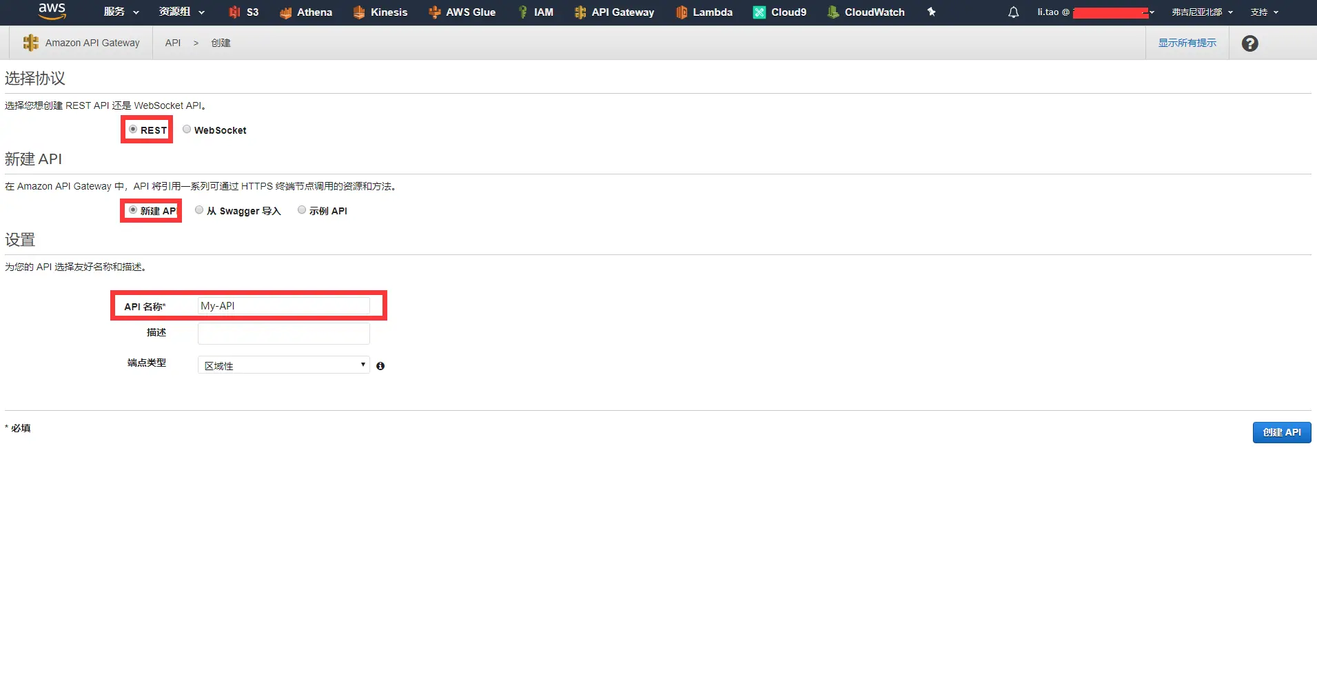 二、使用控制台创建AWS API Gateway