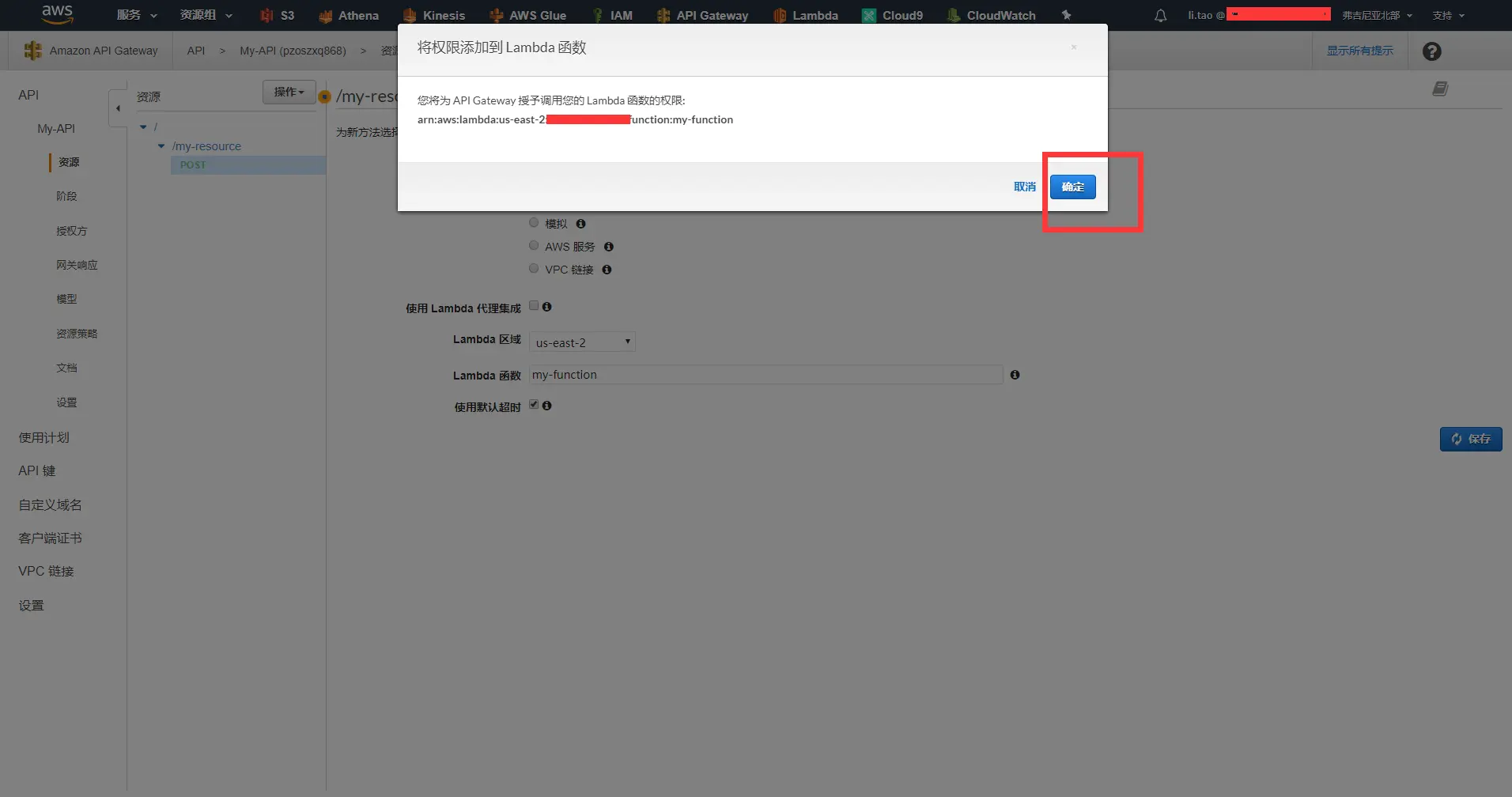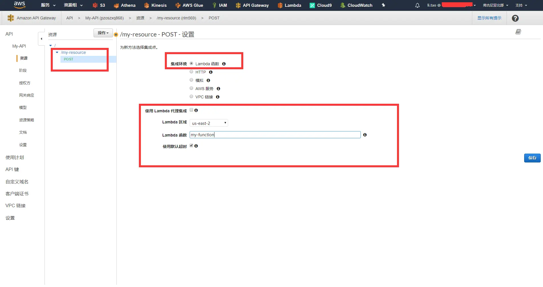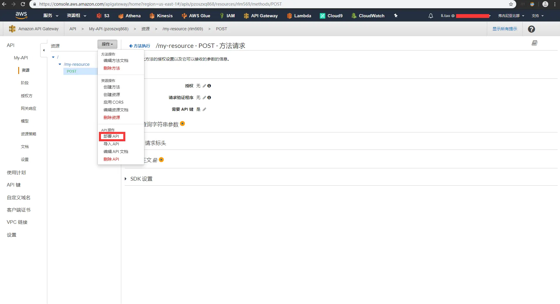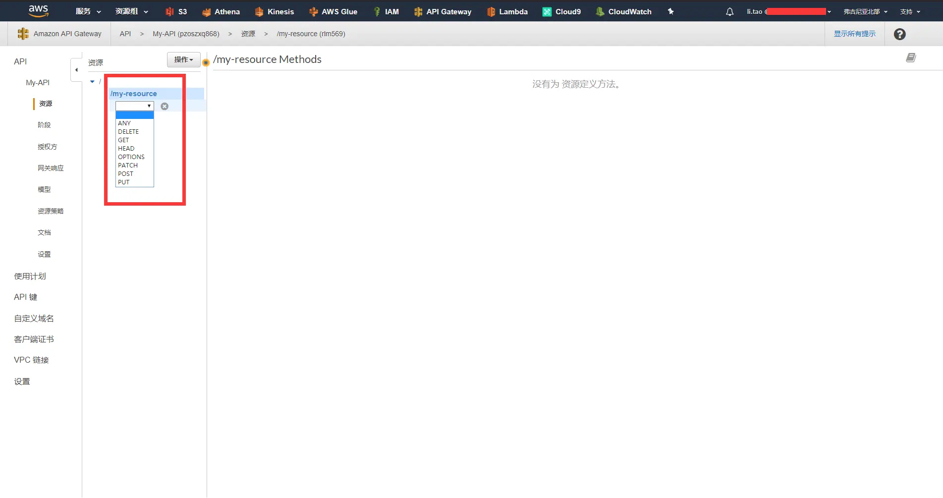 - 选中AWS Gateway API管理界面中已经创建好的My-API