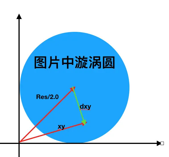 其中vec2 dxy = xy - Res/2.0;的目的已做注释,为更清晰理解见下图: