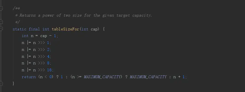 通过“或与”来计算 长度 >>> 位运算是通过无符号右移左边填充0来运算 ,整数的最大值是 2的32 次方 通过 1+2+4+8+16 =32 刚好达到整数的最大次方。让最高位1 后面的其他位数全变成1,这样做还不够,因为如果这个数本身就是2的次方的话,那么我们直接取本身就可以了而不是比自己大的最小2的次方,由于位运算可能会导致负数的出现,这个时候默认为最大整数作为容量。 hashmap在删除元素的时候会适当调整结构比如当hash冲突数据小于6的时候会从树结构转换成链表结构,在由链表结构转成树结构的时候是8,但是由树结构转成链表结构的时候是6,这里主要是基于一些频繁操作的时候,为了防止频繁转换问题,让两者结构互转的时候长度不一样。这种处理方式在百变城中汗多地方都会用到 ,比如缓存的时候设置失效时间,不会专门设置成同一时候。防止同一时候大量操作发生。