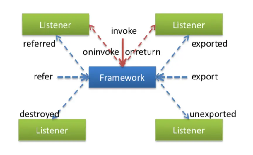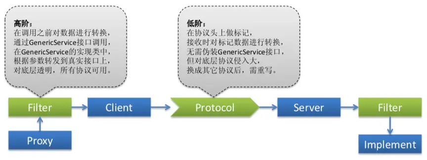 Dubbo在关键路径上采用拦截链分离职责,保持界面功能单一,不易出问题。在非关键路径上,采用后置派发,即使派发失败也不会影响主流程运行