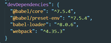 npm install -D babel-loader @babel/core @babel/preset-env webpack安装完成后 package.json 文件里会多一个这个配置