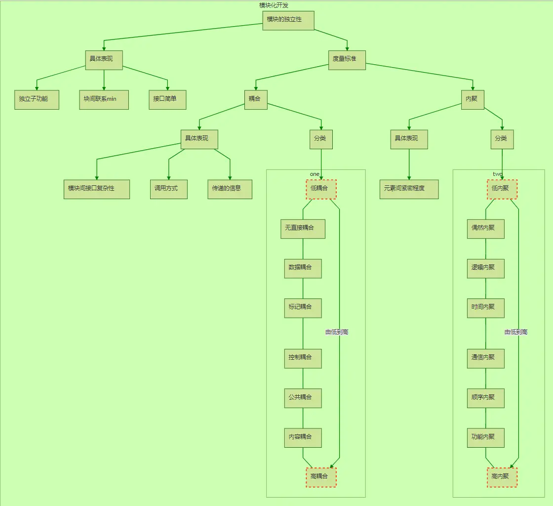 一个模块内各元素(语名之间、程序段之间)联系的越紧密==>内聚性就越高