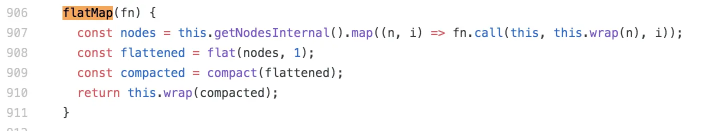 回到上面,flatMap 将根节点展开去掉假值,输出一个数组