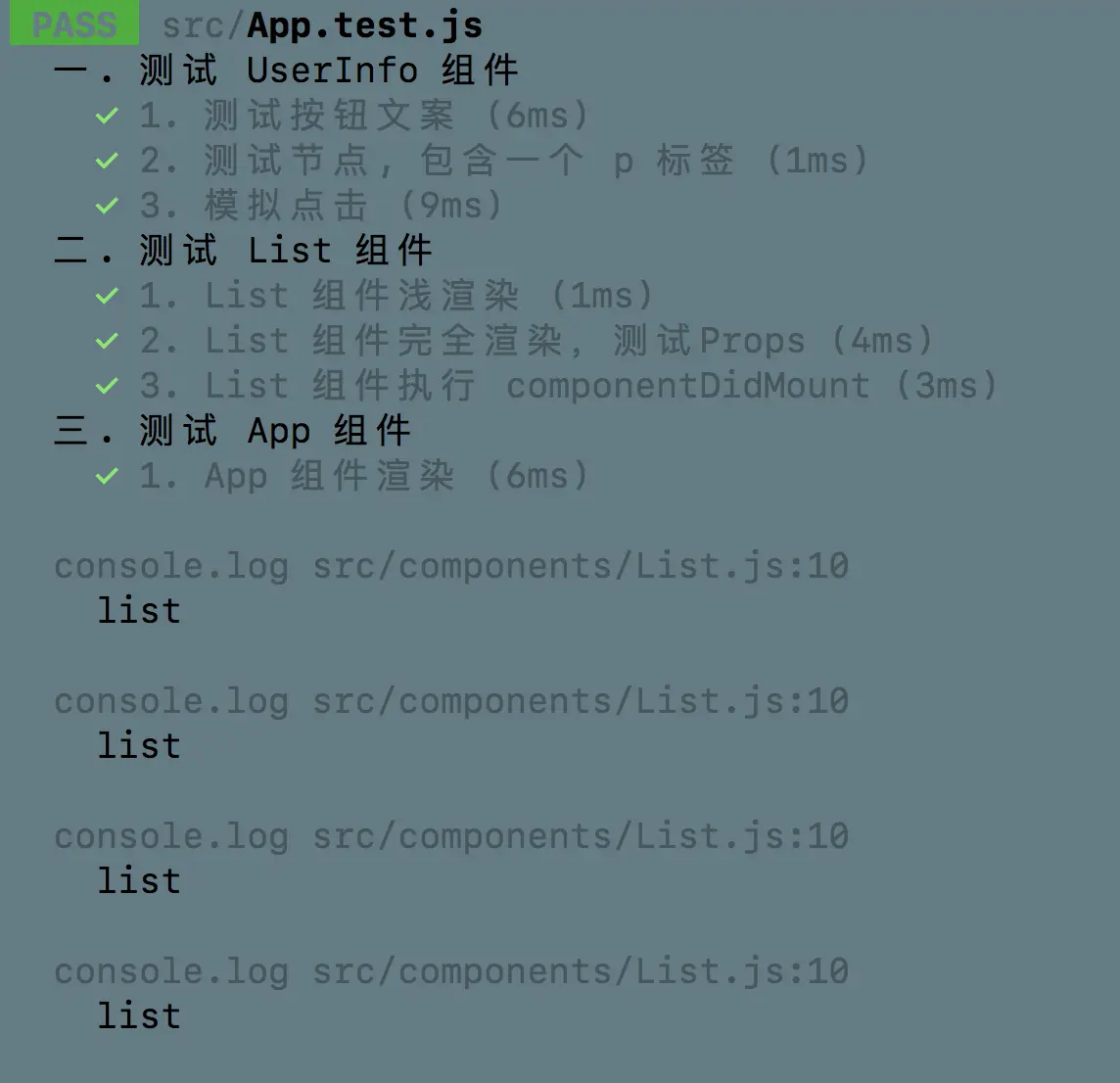上面三个 api 将 React 单元化精确到了原子级别,我们可以测试 某个 button 的文案,某个标题的长度,整个组件的 props 等等