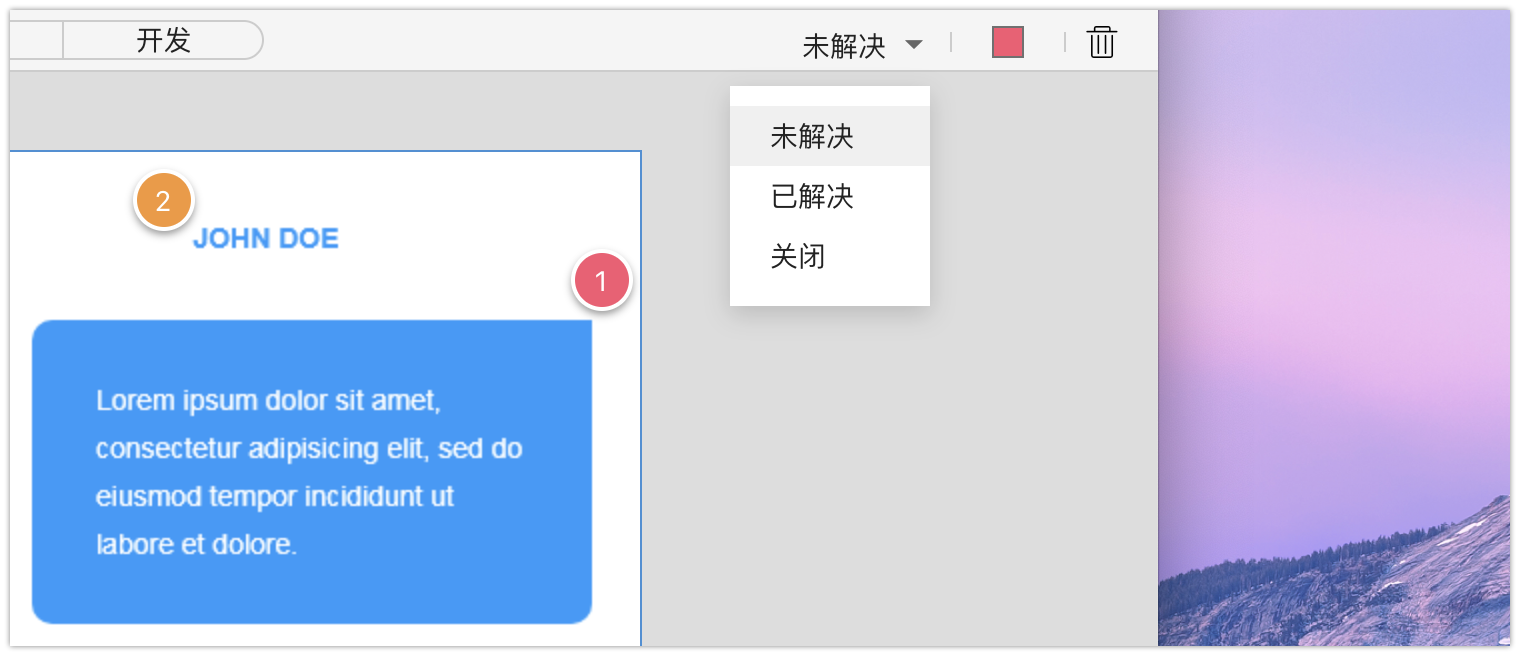 在一个项目中,各个成员提出的改进建议都可以用图钉评论来进行记录,方便所有成员查看。并且每解决一条,设计师或者产品经理都可以将该评论标记为已解决或者关闭。